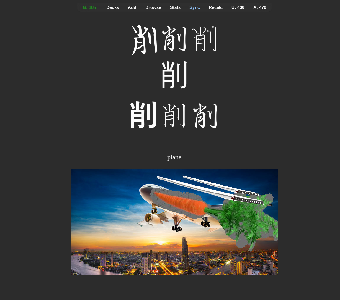 Another option is to use an image editor and an image search to put together low-quality memorable images. Don't spend more than 60 seconds making a story for a card, because time is an asset and there are 3,000 cards to review. Only do this if very comfortable quickly making these kinds of cards with Gimp, for example. Text stories also work. Sometimes when you see a card, it will bring to mind a very particular kind of image. When I saw the kanji marked "smash", I couldn't help but think about the Russian slapping competitions so I put an image of that on there. It's silly, but it works and only takes about thirty seconds. And it fit with the story that I made for it, which is important.